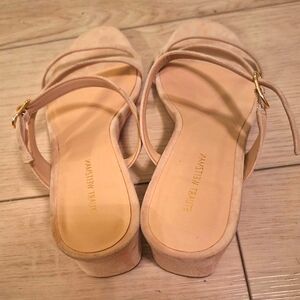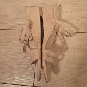 Gorgeous! Stewart Weitzman genuine leather suede wedge sandals slip-ons very soft never worn excellent condition. light beige size 8