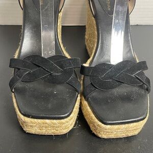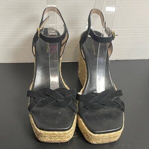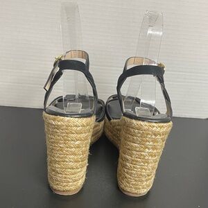 Stuart Weitzman Women’s Wedge Sandals 7.5B Black Suede Espadrille Wedge Summer