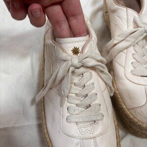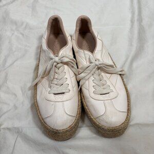 Stuart Weitzman White Leather Sneakers, Women’s 8.5 Platform Espadrille Shoes, Lace Up Jute Sole Casual Shoes, Designer Everyday Travel Sneakers