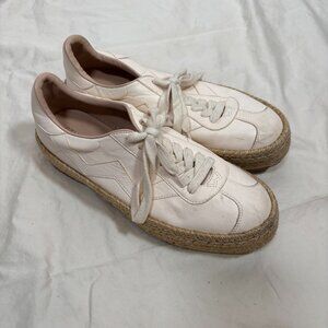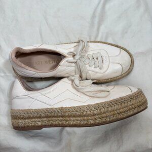 Stuart Weitzman Women’s White Leather Espadrille Sneakers Platform Shoes Size 8.5