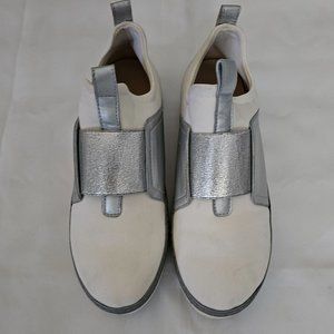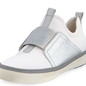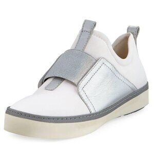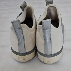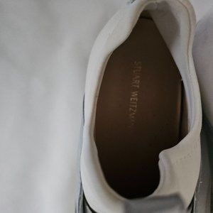 Stuart Weitzman Women's White Silver Slip-On Sneaker Size 6M