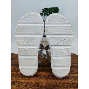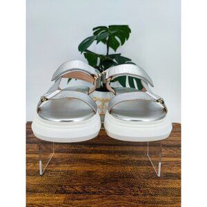 Stuart Weitzman Women’s Zoelie Silver Metallic Leather Platform Sandals Size 7