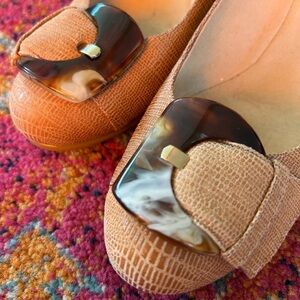 Stuart Weitzman | Women’s tan textured leather tortoise shell Bucalina heels 7.5