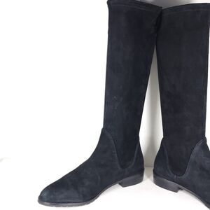 Stuart Weitzman Women's Lilene US 9 Black Suede Stretch Pull On knee high Boots .