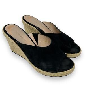 Stuart Weitzman Wonda Suede Wedge Sandal Women's 9.5 Black Espadrille