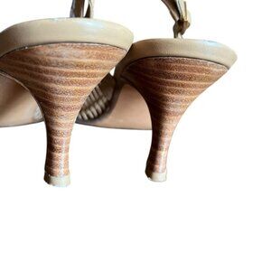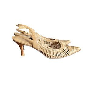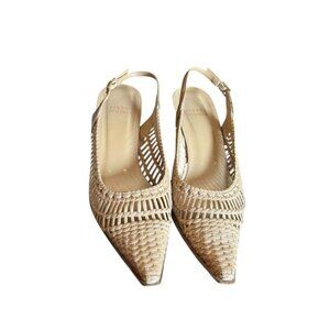 Stuart Weitzman Woven Slingback Kitten Heels Size 6 Beige Raffia Style