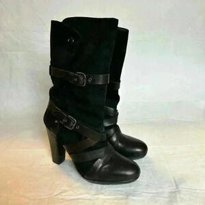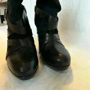 Stuart Weitzman Wraparound Black Leather Suede Strap Boots