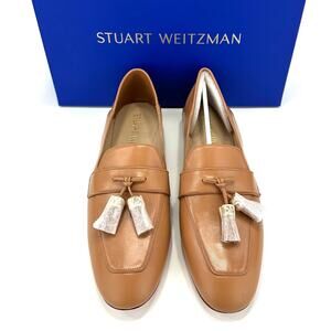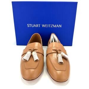🍏 Stuart Weitzman Wylie Women Flat Loafer/Mule Size 11 Tan Luxe Leather Tassel New