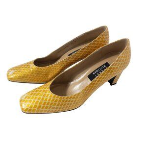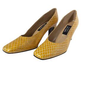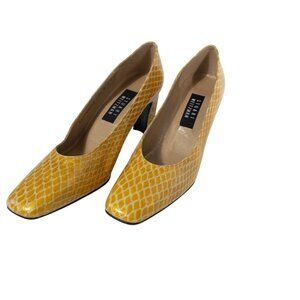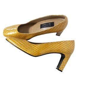 Stuart Weitzman Yellow Snake Print Leather Pump SZ 9.5 Block Heel Bold