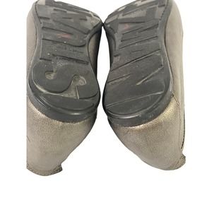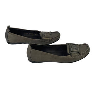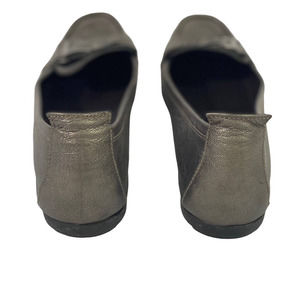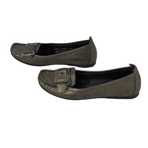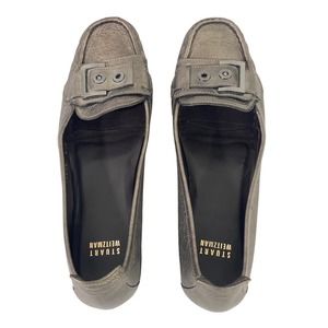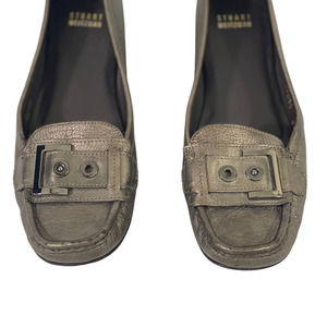 Stuart Weitzman Zwick Moccasin Loafer Flat Shoes Pewter Gray Shimmer Buckle 8.5M