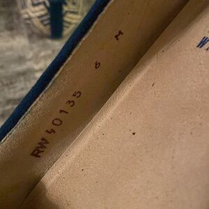 Stuart Weitzman Women’s Size 6 Baller flat Blue/tan Raffia Geometric Round toe Great condition