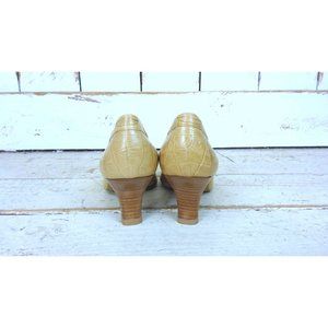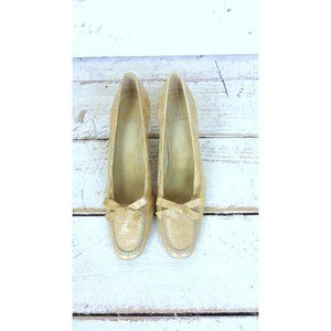 Stuart Weitzman beige tan embossed high heel leather pumps/reptile embossed heels/8 M