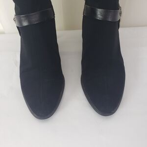 Stuart Weitzman black Gore-Tex zip ankle boots leather stud harness detail 8.5