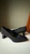 Stuart Weitzman black knit fabric & patent leather square-toe pumps block heel.