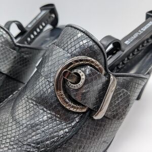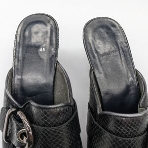 Stuart Weitzman black snakeskin pattern mule slip on heel 9.5