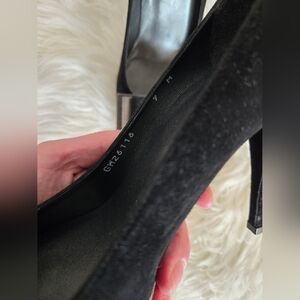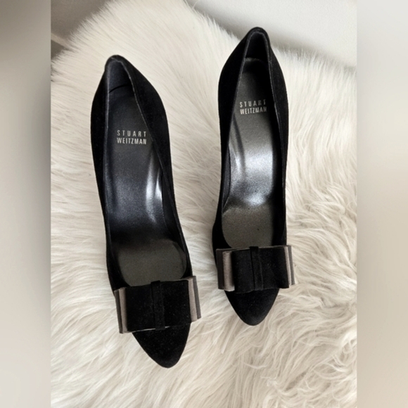 Stuart Weitzman black suede platform heels with bows, 4.5 inch heel, size 9