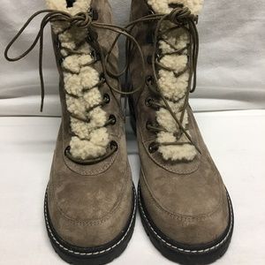 ' WINTER IS HERE ! ' Suede boots with Rubber soles, 1" heel, medium width, tan color. These are really warm boots, just right for freezing temperatures during the winter. Never worn.