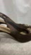 Stuart Weitzman brown satin sling back low heel gem jewelled buckle formal Sz 11