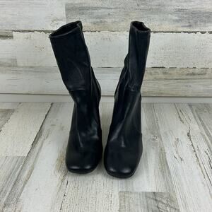 Stuart Weitzman curveblock 100 square womens 9 black leather bootie slip on heel
