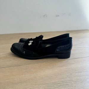 Stuart Weitzman for Russell & Bromley Black Patent Leather Loafers