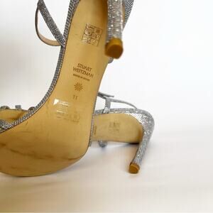 Stuart Weitzman glitter Silver Strappy Heels size 11 Starla 105 Sparkle Sandal