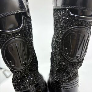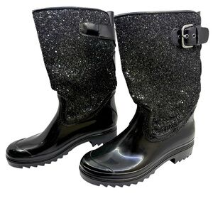 Stuart Weitzman glitter black rubber boots size Large (7.5)