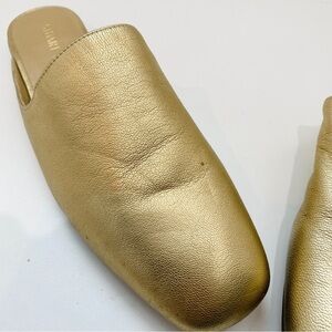 Stuart Weitzman gold leather mules NEW