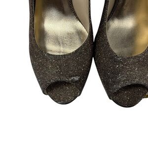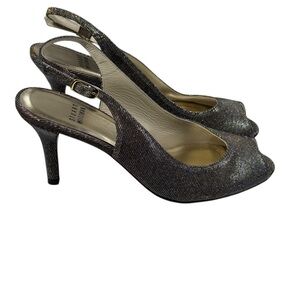 Stuart Weitzman gold metallic peep toe sling back heels size 8