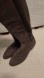 gray sude with stretch back panels pull-on boots with 1" stacked heel.