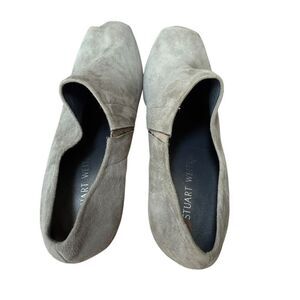 Stuart Weitzman grey suede peep-toe platform booties chunky block heel size 10