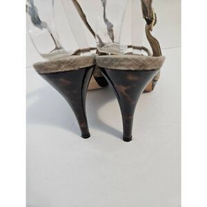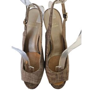 Stuart Weitzman heathered tan slingback with a unique 4" tortoise shell heel. S