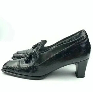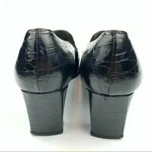 Stuart Weitzman womens heels size 7 AA black leather croc embossed square toe oxfords 90s vintage