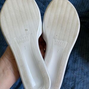 Stuart Weitzman floral jelly sandals in raspberry and orange. Jelly thong with fabric poppies as decoration. Bright and fun! Size 7