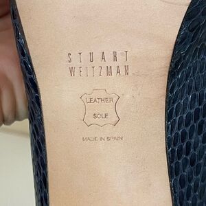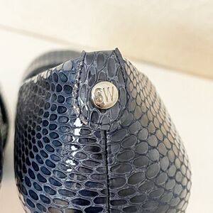 Stuart Weitzman navy Blue python embossed Peep-Toe platform Heels. 11