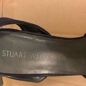 Stuart Weitzman navy blue suede strappy sandals, size 7.5..has 3” heels.