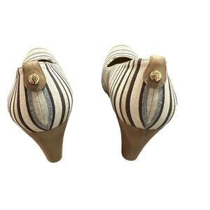 Stuart Weitzman neutral striped heel with suede wedge Size 10M