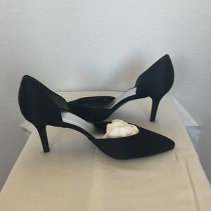 Stuart Weitzman Twice black satin dress shoes, worn twice, like new condition. Comes in original box.
