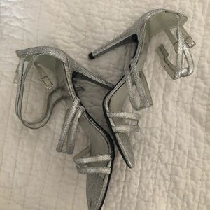 These beautiful shoes have only been worn maybe once, if not just around the house! You will notice the bottoms are flawless. There are a few spots (pictured) from my daughter playing in them. Size 7, silver glitter
