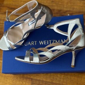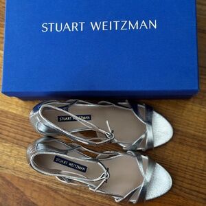 Stuart Weitzman silver ankle strap sandal Size 6