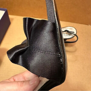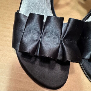 Stuart Weitzman size 6.5 Lulu heel, black satin, ruffle toe, dustbag, party