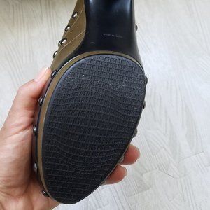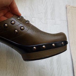 Stuart Weitzman studded platform mules / clog slip ons, Olive Green (size 7)