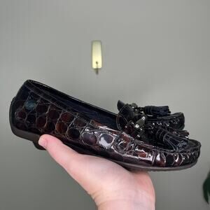 VGUC. Little to no wear detected. Brown croc patent leather mocc style loafer. SW Loafers start at $400 retail.