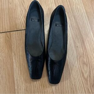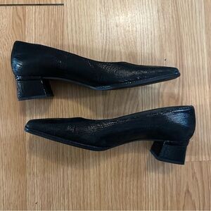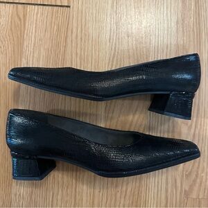 Stuart Weitzman vintage 6 short block heel black snake skin low heels. Excellent condition. No stains or holes. Minimal wear on tread.