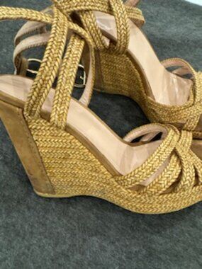 Flaw: the insoles of each shoe are a little folded over at the heel. Minor smudges on uppers. See photos.
