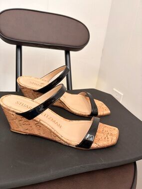 Stuart Weitzman women's suede Fitness wedges 8.5 M black ankle booties