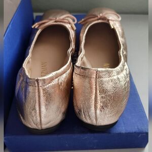 Stuart Weitzman Bardot Mettalic Bow Leather Ballet Flats Size 6.5