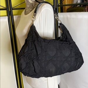 Stuart WeitzmanBlack Quilted Fabric Hobo Bag