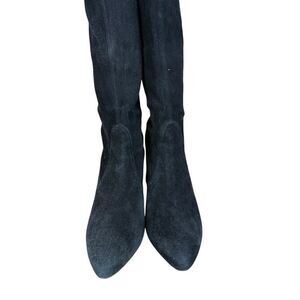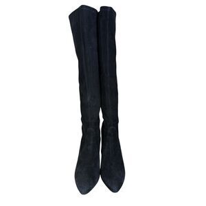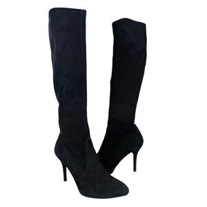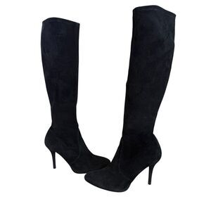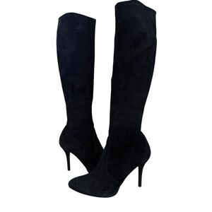 Stuart Weitzman Black Suede Knee-High Stretch Boots Size 8M Pointed Toe Stiletto