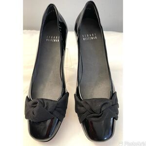 Stuart Weitzman Front Ribbon Bow Black Patent Kitten Heel Pumps Women’s Shoes Size 5 Medium. Cushioned Insole & Outsole Leather Lined. Excellent Preowned Condition, Worn Once, No Box!