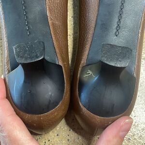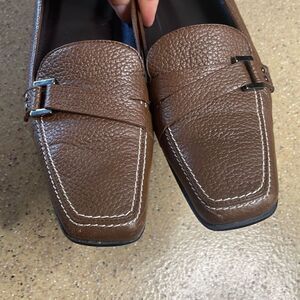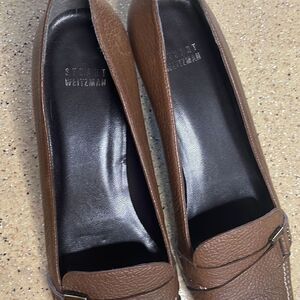 Stuart Weitzman Brown Pebbled Leather Square Toe Kitten Heel Low Heels sz 8N